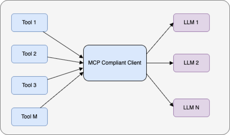Consider the same example where we discussed that you must do MxN implementations to integrate M tools for N LLMs.